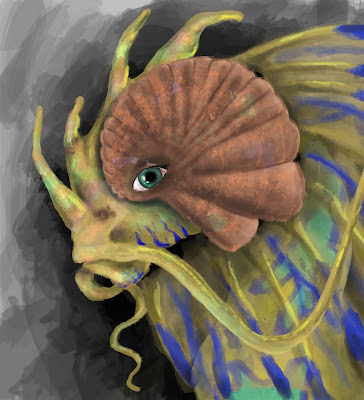 I think I am pretty much done with this one. I now want to make a full body pose of him with his head ring wide open. I like the translucency of it and the really bright blue colour.